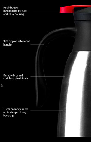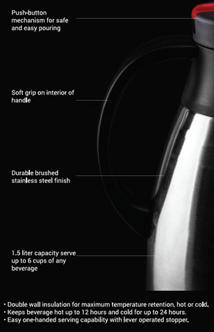• 1.5 liter capacity serve up to 6 cups of any beverage